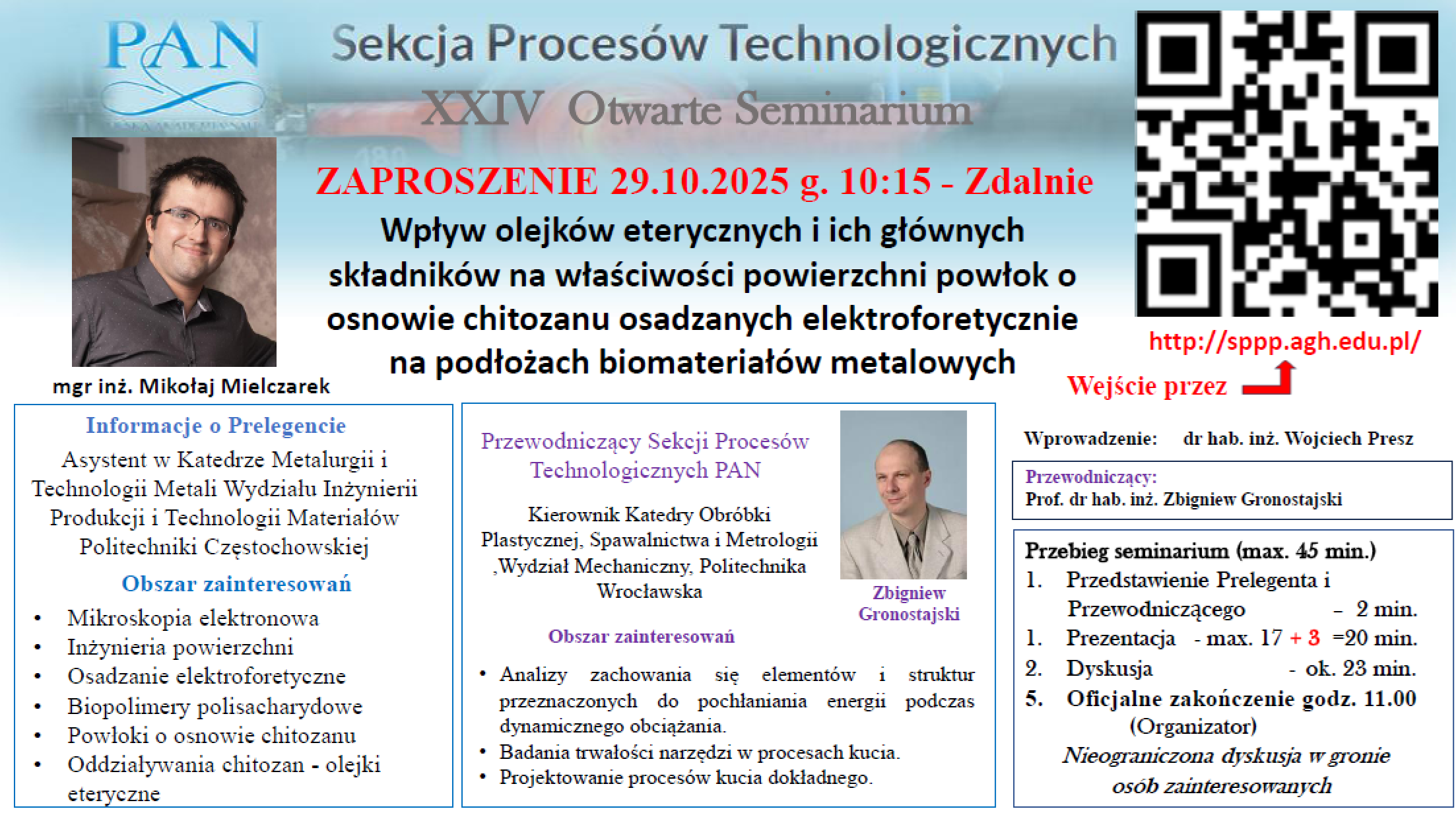 Chitozan, naturalny biopolimer uzyskiwany na skutek reakcji deacetylacji chityny, jest jednym z najczęściej wykorzystywanych materiałów do uzyskiwania powłok przeznaczonych na zastosowania biomedyczne. Wynika to z jego dużej biozgodności i potencjału antybakteryjnego. Stosuje się go też bardzo często jako osnowę kompozytowych powłok osadzanych elektroforetycznie. Spośród wielu różnych możliwych do zastosowania substancji aktywnych zwiększających bioaktywność, właściwości przeciwdrobnoustrojowe czy odporność na korozję elektrochemiczną, bardzo obiecującą grupą są substancje pochodzenia naturalnego, a zwłaszcza olejki eteryczne i ich składniki.